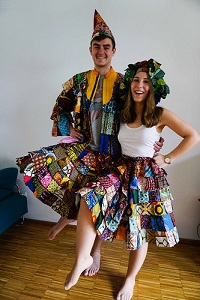 Our Carneval costumes come in many forms, colours and sizes. There are jackets, vests, trousers, dresses, skirts and caps. The colours may be fully mixed, or tend to a certain shade. Some articles include lace. The sizes range from small to extra large. No article is the same as another: Each article is unique!